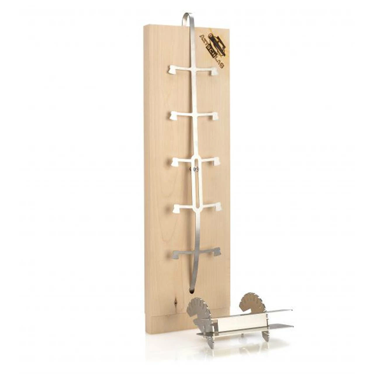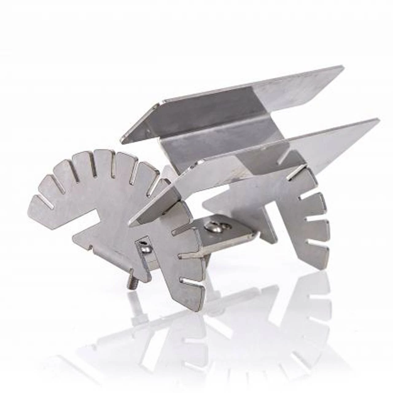 Die Halterung wird auf der Lachsseite befestigt, so dass dieser sicher am Brett gehalten wird. Durch seine patentierte Halterung kannst Du das Brett sowohl an Grills als auch an Feuerschalen befestigen. Dank der verschiedenen Stufen, hast Du die freie Möglichkeit wie nach dein Lachs an der Hitze seien soll.