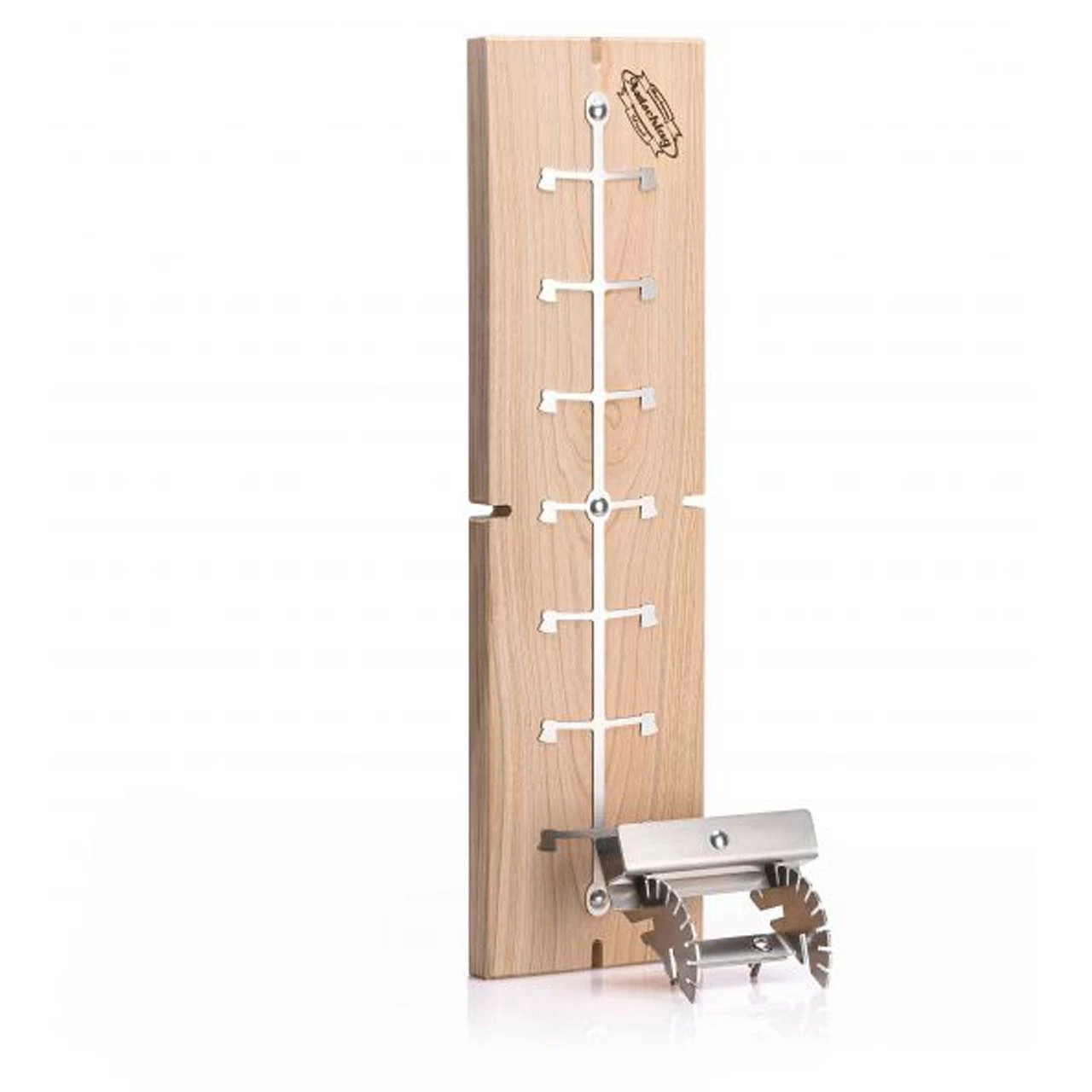 Die Halterung wird auf der Lachsseite befestigt, so dass dieser sicher am Brett gehalten wird. Durch seine patentierte Halterung kannst Du das Brett sowohl an Grills als auch an Feuerschalen befestigen. Dank der verschiedenen Stufen, hast Du die freie Möglichkeit wie nach dein Lachs an der Hitze seien soll.