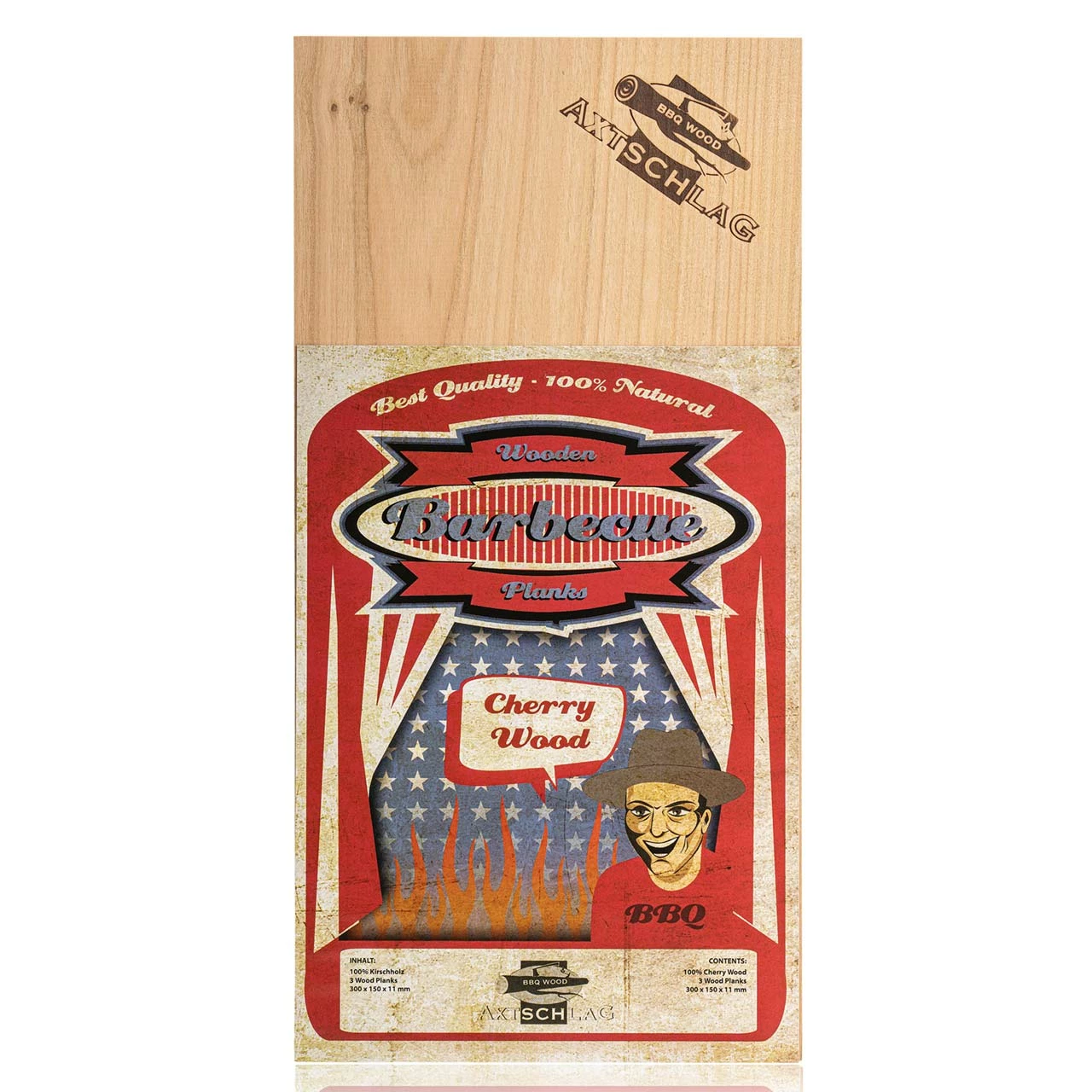Die Axtschlag Woodplanks bestehen zu 100% aus unbehandeltem Kirschholz. Die Grillplanke kannst Du auf allen Arten von Grills verwenden. Dein Grillgut wird nicht direkt über dem Feuer gegrillt, sondern schonend auf der Holzplanke und nimmt gleichzeitig ein leichtes Holzaroma an.