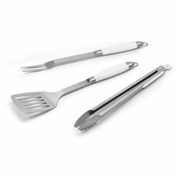 Das Set besteht aus einem Wender, einer Grillzange und einer Grillgabel.
