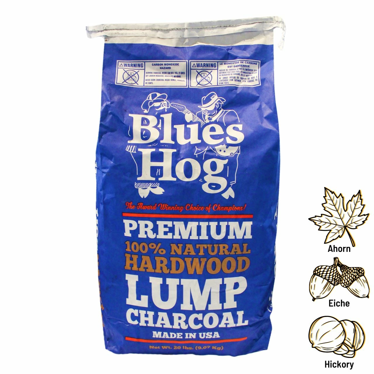Die Blues Hog Natural Lump Charcoal sind 100% natürliche Holzkohlen. Diese bestehen aus Harthölzern aus Missouri, USA. Mit dabei: Eiche, Hickory und Ahorn. Diese Kombination bringt Dir tolle Aromen beim Grillen, weshalb diese Holzkohle von den Top-Pitmastern in der Grillwelt genutzt wird. Die Holzkohle ist relativ grobstückig.