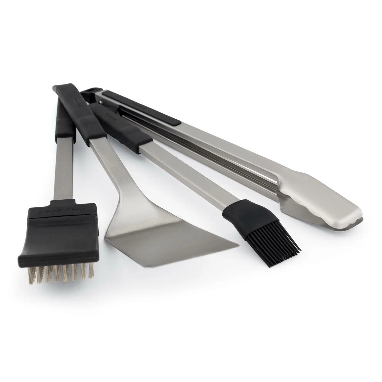 Das Besteck-Set Baron von Broil King beinhaltet alles, was zur Grundausstattung gehört! Das Set umfasst eine Grillzange, einen Wender, einen Silikonpinsel und eine Grillbürste.