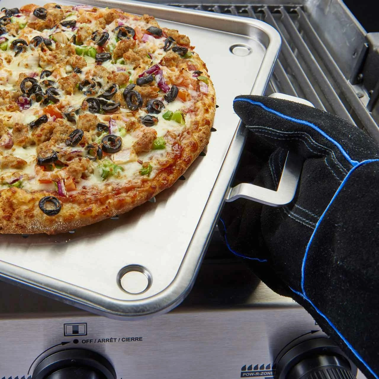 Die schwarzen Grillhandschuhe von Broil King wurden aus hochwertigem Leder gefertigt und bieten perfekten Schutz vor Hitze beim Grillen mit Grillschalen, Woks oder Toppern. Besonders die Passform und die Materialverarbeitung sorgen für einen besonders angenehmen Tragekomfort. Dennoch besitzt Du während des Tragens das nötige Feingefühl beim Arbeiten am Gas- oder Holzkohlegrill. Auch optisch sind die Handschuhe durch ihr schlichtes Schwarz und die hochwertige Stickerei ein echter Hingucker.