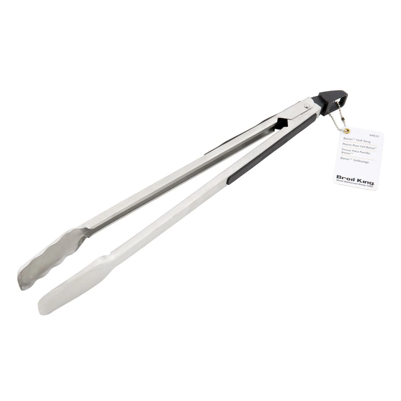 Die Grillzange Baron von Broil King ist das ideale Grillwerkzeug für Dich als anspruchsvollen Griller. Die aus Edelstahl gefertigte Grillzange liegt durch ihr geringes Gewicht angenehm in der Hand und der Kunststoff an den Griffen verhindert, dass Du mit der Hand abrutscht. Obendrein besitzt diese einen Verriegelungsmechanismus, an dem man die Zange direkt aufhängen kann.