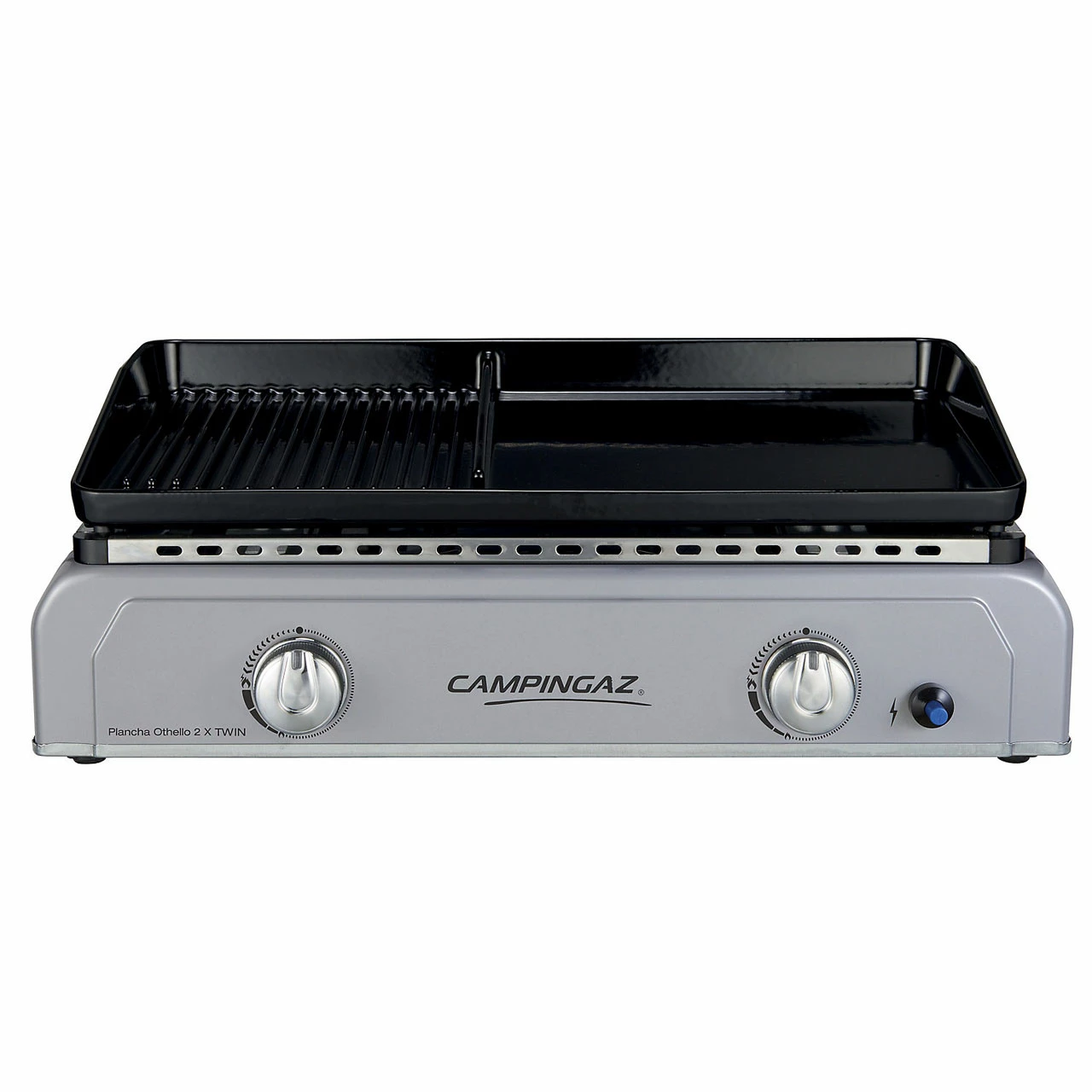 Die Plancha Othello 2 X Twin von Campingaz bietet Dir eine weitere Möglichkeit, um Deine Gerichte gesund und besonders schmackhaft zuzubereiten. Das Besondere: Die Feuerplatte ist zweigeteilt. Dabei hast Du die Möglichkeit auf der einen Seite die geriffelte Oberfläche zu benutzen, während die andere Hälfte aus der flachen Plancha-Seite besteht. Dabei kann die Plancha bis 350°C heiß werden, sodass Du für jedes Gericht den optimalen Temperaturbereich abfangen kannst. Vor allem bei Steaks kommen Dir die heißen Temperaturen zu Gute, denn so wird der Zucker im Fleisch karamellisiert und unglaublich leckere Röstaromen entfalten sich.