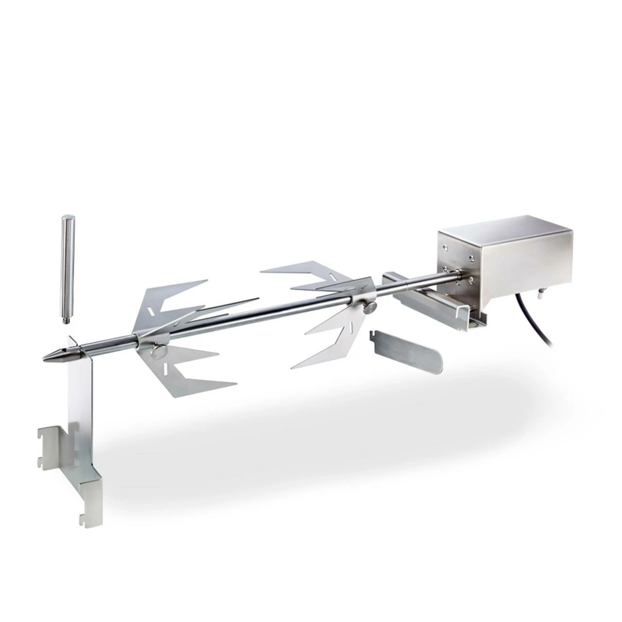 Mit dem hochwertigen Edelstahl Drehspieß von Flammkraft machst Du deinen Flammkraft Block zu einem vollständigen Grill der keine Wünsche was Grillgerichte angeht offen lässt. Der Spieß dreht sich mit 3 Umdrehung in der Minute und kann bis zu 10 Kg Grillgut tragen. Dank der ausgeklügelten Brennerstellung strahlen diese Dein Grillgut im idealen Winkel an und das Fett tropft nicht in die Brenner. Die hochwertigen Klammern halten Dein Grillgut genau an der Stelle wo es sein soll.