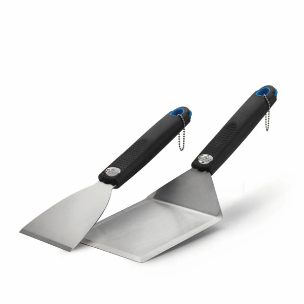 Mit dem zweiteiligen Plancha Tool-Set von Napoleon kannst Du kinderleicht Gargut auf einer Plancha, Gussplatte oder anderen glatten Oberfläche wenden, da es sich ideal für ein einfaches und sauberes Arbeiten eignet. Dieses besteht aus einem ergonomischen Spatel sowie einem Grillwender aus hochwertigem Edelstahl. Der Grillwender sorgt dafür, dass Du Dein Grillgut auf der Platte schnell wenden oder aufnehmen kannst. Aufgrund der abgeflachten Form ist zudem ein Schneiden und Zerkleinern der Speisen möglich. Mit dem Schaber bist du in der Lage, die Grillplatte einfach und gründlich abzuschaben. Die Griffe aus Kunststoff haben den Vorteil, dass Du dich bei der Arbeit auf der heißen Platte nicht verbrennst. Abgerundet wird das Gesamtbild dadurch, dass sowohl der Spatel als auch der Grillwender in der Spülmaschine gereinigt werden können. Eine kinderleichte Reinigung ist somit garantiert.