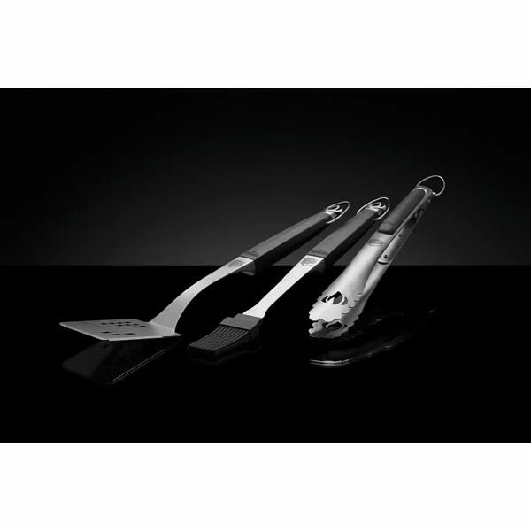 Das dreiteilige President’s Limited Grillbesteck von Napoleon verfügt über komfortable, ergonomische Griffe und wurde aus Feinguss-Edelstahl gefertigt. Dieses Set besteht aus einem Silikonpinsel, einem Grillwender und einer Zange aus Edelstahl. Bedingt durch seine Blattspitze sowie dem gezackten Rand und seiner großen Wendefläche ist der Grillwender besonders geeignet für Steaks und andere große Speisen. Die Edelstahlgrillzange ist dank ihres Easy-Lock-Verschlusses stets einsatzbereit und aufgrund ihrer bequemen Griffs kannst Du dein Grillgut mühelos aufnehmen und bewegen. Abschließend hilft Dir der Marinadepinsel aus Silikon dabei, die Soße aufzutragen und Deine leckeren Speisen zu bestreichen. Dieses Grillbesteck-Set von Napoleon lässt keine Wünsche mehr offen und lässt Dich zum Grillmeister auf der nächsten Gartenparty werden.