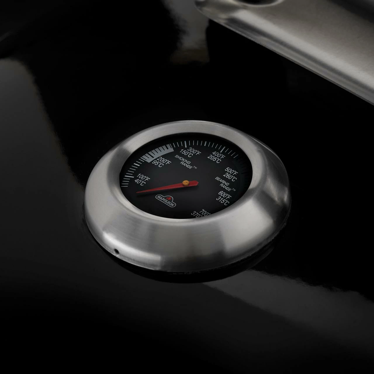 Das ACCU-Probe™ Deckelthermometer ist auch ein wiederkehrendes Feature bei den Napoleon-Grills und ein zuverlässiger Partner beim Grillen. Es zeigt die Temperatur im Garraum an, womit Du zu jeder Zeit die Kontrolle über Deinem Grillgut hast und es nicht verbrennt. Der Deckel kann ganz leicht mit dem innenliegenden Haken an den Grill gehängt werden.