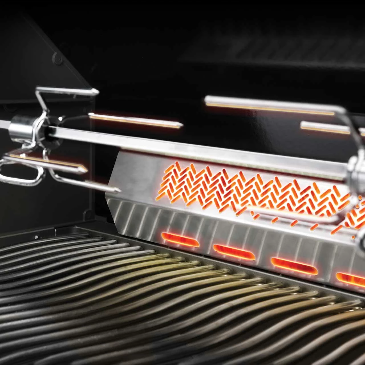 Mit der SIZZLE ZONE™ mit einer Grillfläche von 37 x 24 cm kannst Du Deine Gäste schon ordentlich beeindrucken, doch auch der Infrarot-Heckbrenner für Gerichte vom Drehspieß kann sich sehen lassen. Und damit Du auch direkt für alle Eventualitäten gewappnet bist, gibt es das passende Drehspieß-Set mit Motor inklusive! Die Hauptgrillfläche von 94 x 46 cm bietet Dir genug Grillkapazitäten für bis zu 15 Personen und das Warmhalterost hilft Dir dabei in mehreren Etappen zu grillen. Somit muss keiner Deiner Gäste leer ausgehen.