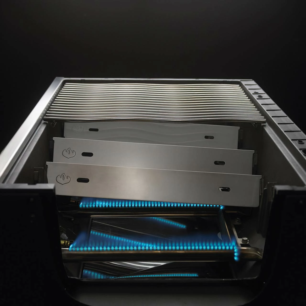 Die 4 Hauptbrenner bestehen aus 1,7 mm dicken 304er Edelstahl und besitzen eine Gesamtleistung von 15,2 kW. Die SIZZLE ZONE™ Area hat 7,6 kW und der dazugehörige Warmhaltebrenner überzeugt mit 2,5 kW. Der Infrarot-Heckbrenner kann mit 5,5 kW glänzen und der Power-Seitenbrenner besitzt 5,3 kW. Die Leistung beim Smoker-Brenner liegt bei 2,5 kW. Somit ist die Gesamtleistung aller 10 Brenner 38,6 kW. Damit kann man den Grillabend nicht nur mit gutem Gewissen starten, sondern ist den ganzen Abend über erfolgreich!