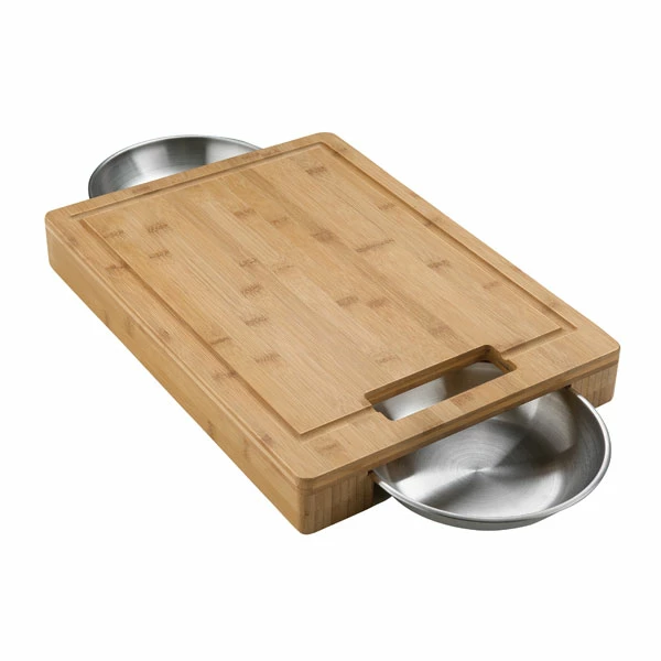 Das PRO Schneidebrett mit zwei Edelstahl-Schalen von Napoleon vereint gleich mehrere Funktionen miteinander: Das Schneidebrett aus Bambus besitzt eine antibakterielle Oberfläche und kann perfekt für die Zubereitung von Speisen an Deinem Grill genutzt werden. Die beiden Edelstahlschalen können seitlich unter das Brett geschoben werden und die Rille des Schneidebretts fängt Flüssigkeiten auf, die problemlos über die Griffe der Schalen aufgefangen werden. Dieses Schneidebrett aus der PRO-Serie mit Edelstahlschalen von Napoleon ist das ideale Zubehör für Dich, wenn es um das Thema Grillen geht.