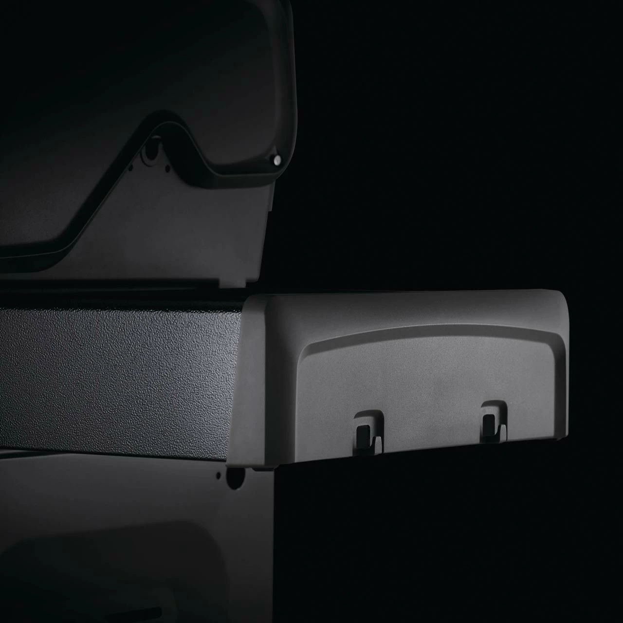 Die Seitenablagen sind beide abklappbar. So ist es einfacher, Deinen Rogue platzsparend unterzubringen. Zudem bietet sich reichlich Abstellfläche, damit Du nicht ständig in die Küche zurückrennen musst. Selbst Dein Grillwerkzeug findet an den Aufhängungen Platz.