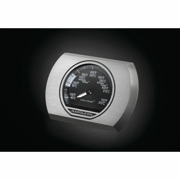 Das ACCU-Probe™ Deckelthermometer ist auch ein wiederkehrendes Feature bei den Napoleon-Grills und ein zuverlässiger Partner beim Grillen. Es zeigt die Temperatur im Garraum an, womit Du zu jeder Zeit die Kontrolle über Deinem Grillgut hast und es nicht verbrennt. Extra hoher Deckel, damit man ohne Probleme ein Beer-Can-Chicken braten kann.