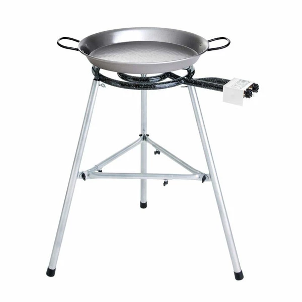 Buenos Dias! Holen Sie sich ein Stück Spanien in ihren Garten, ihre Gastronomie oder auf ihre Feier! Die Produkte von Paella World sind auf erstklassigen Paella-Genuss ausgerichtet. Die Pfanne ist aus poliertem Stahl gefertigt und hat die ideale Form, um das spanische, weltberühmte Nationalgericht schmackhaft, authentisch und perfekt zu kochen. Mit diesem Set erhalten sie aufeinander abgestimmte Pfanne, Ständer und Brenner auf einmal und können sich gleich ihrem kulinarischen Erlebnis widmen!