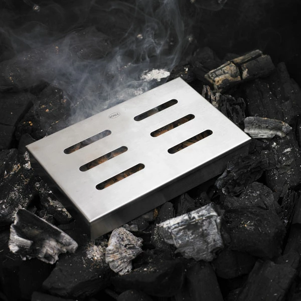 Mit der Rösle Räucherbox kannst Du Dein Grillgut genau so räuchern wie bei echtem BBQ in Amerika. Die zweiteilige Edelstahlbox aus Räucherschale und Deckel fasst bis zu 750 ml und verleiht dem Lebensmittel einen aromatischen Rauchgeschmack.