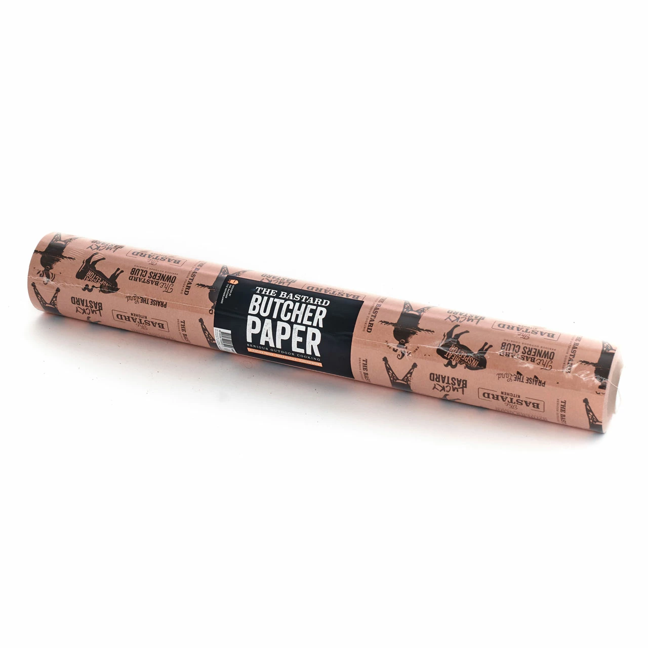 Butcher Paper wird immer beliebter. Kein Wunder also, dass die altbewährte Alu-Folie mit dem Butcher Paper Konkurrenz bekommt. Das Butcher Paper von The Bastard kommt dabei auf einer 30 Meter Rolle und zeichnet sich durch seine Atmungsaktivität aus. Das Butcher Paper eignet sich dabei ideal zum Garen, Einwickeln und Servieren von Speisen. Durch den verspielten Aufdruck kannst Du das Butcher Paper auch als Geschenkpapier benutzen.