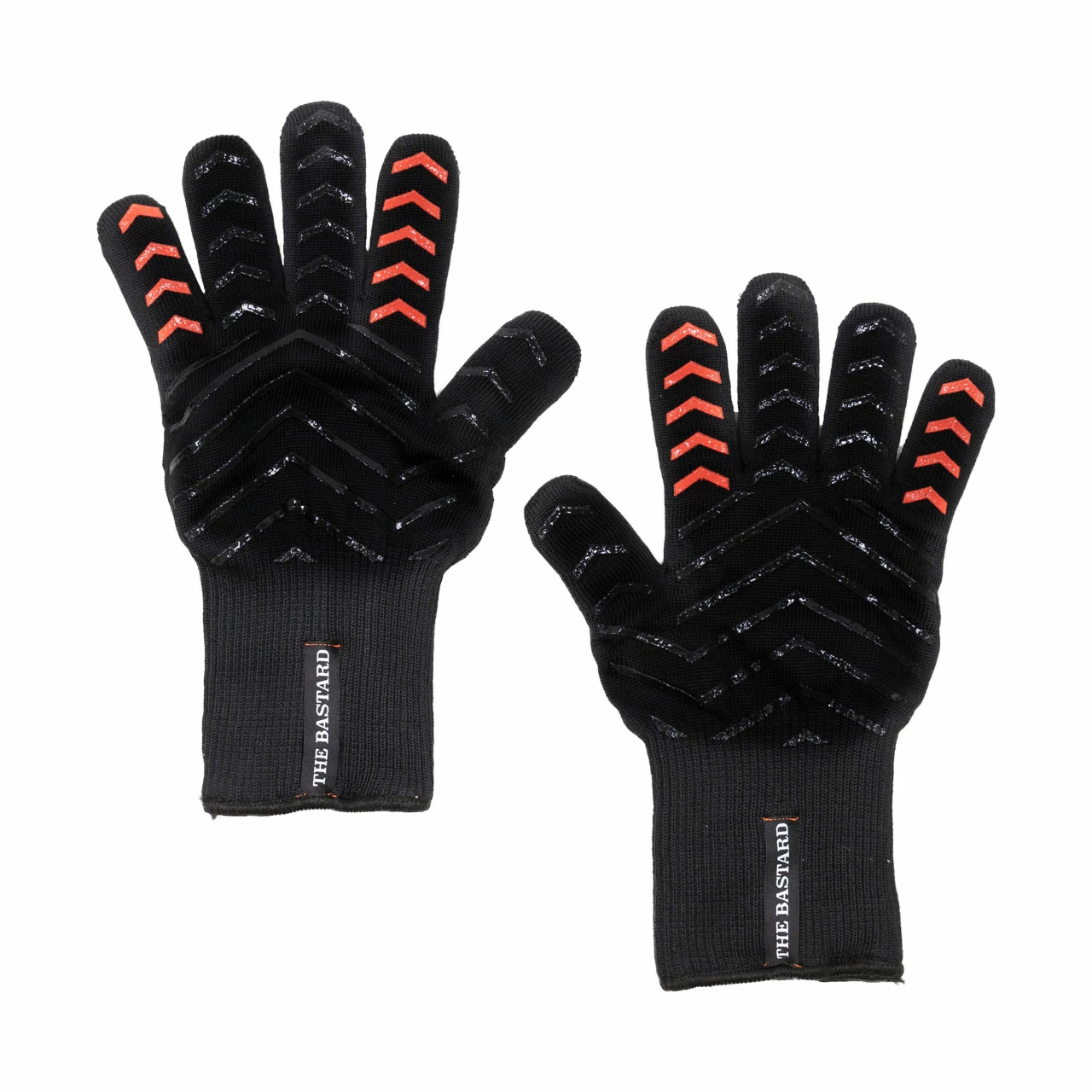 Die The Bastard Fiber Thermo BBQ Handschuhe sind aus Nomex und Kevlar gefertigt. Durch die Materialeigenschaften sind sie besonders hitzebeständig und superstark. So kannst Du auch heiße Roste problemlos herausnehmen, ohne dass Du Dir dabei die Finger verbrennst. Die Grillhandschuhe werden jeweils als Paar geliefert und passen dank ihrer Einheitsgröße an jede Hand.