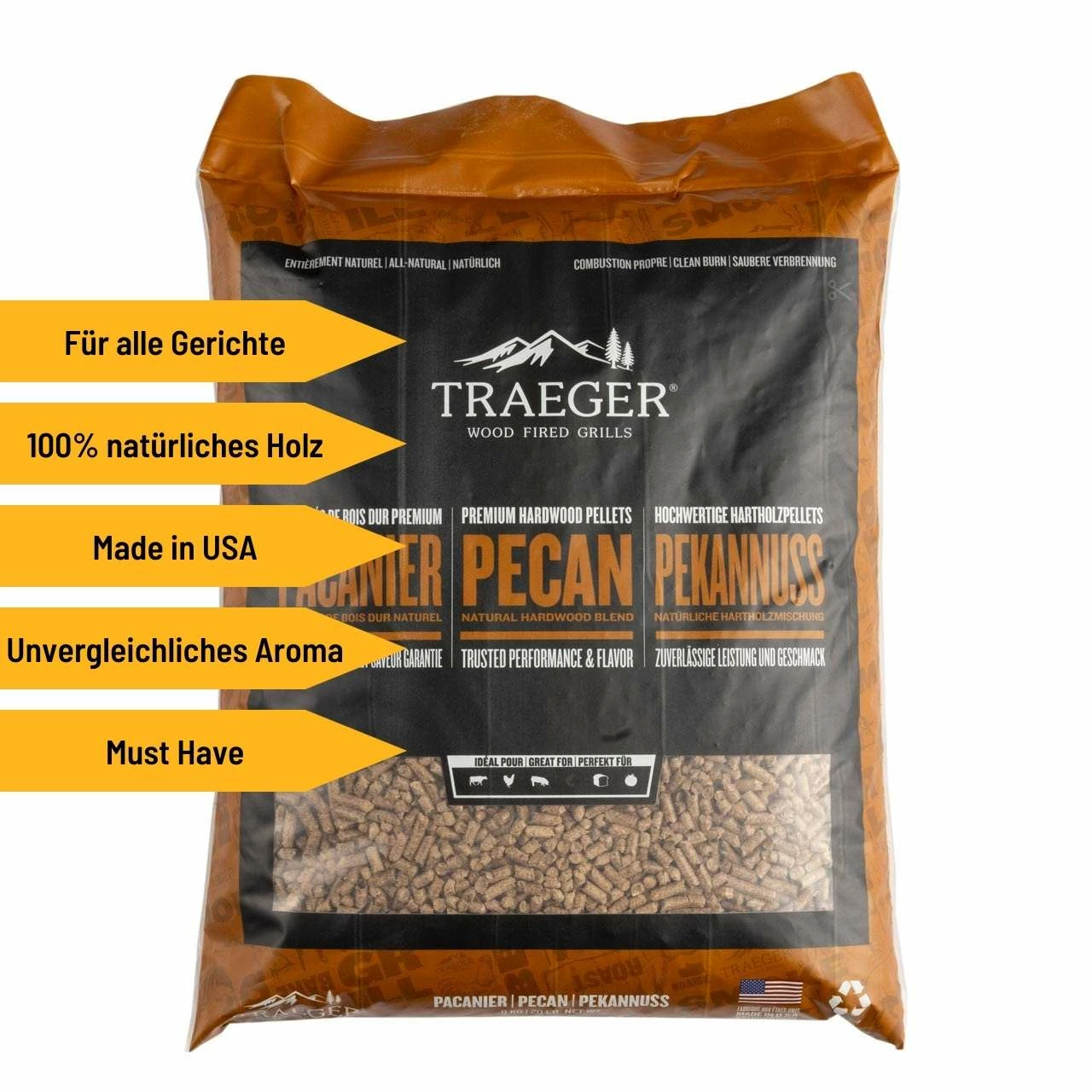 Diese Pecannuss-Pellets von Traeger sind ein wahres Must-have für jeden Traeger Grill Besitzer. Sie sind speziell für Traeger Grills entwickelt und erzeugen den besten Rauch. Sie verleihen Deinem Grillgut ein unvergleichliches Aroma und bringen Dein BBQ auf ein neues Level. Pecannuss-Aroma passt besonders gut zu Geflügel, Schwein, Rind, Gemüse und Backwaren. Die Pellets bestehen aus 100% natürlichem Hartholz. Beste Qualität aus den USA für Dein Zuhause!