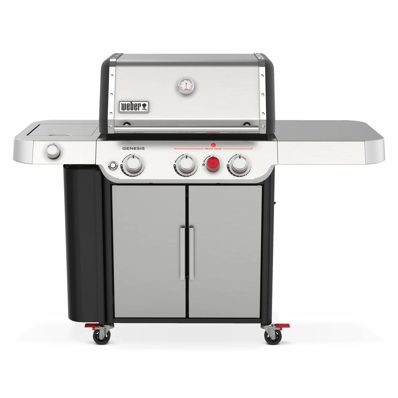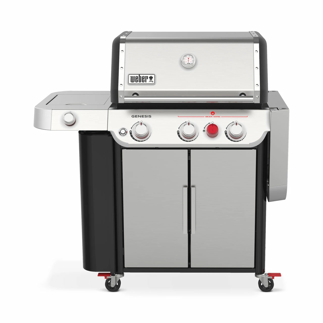 Das neuste Modell von Weber verfügt über 3 Edelstahl-Brenner mit einer Brennerleistung von 11,4 kW. Mit der Sear Zone holst Du Dir ein Hochleistungshitzesystem nach Hause, mit dem Du die perfekten Röstaromen bei ultimativem Geschmack und maximaler Temperatur bekommst. Durch die gleichmäßig-intensive Hitze bekommst Du so zudem schöne Brandings auf Dein Grillgut. Die Flavorizer Bars aus Edelstahl – Aromaschienen – verteilen die Hitze der heißen Flamme gleichmäßig und schützen gleichzeitig Dein Fleisch vor dem direkten Flammenkontakt. Zusätzlich verfügt der Grill über eine Seitenkochstelle. Mit dieser kannst Du sautieren, Wasser kochen oder auch Saucen erwärmen. So hast Du eine weitere Zubereitungsmöglichkeit, um Deine Gäste zu verzaubern.