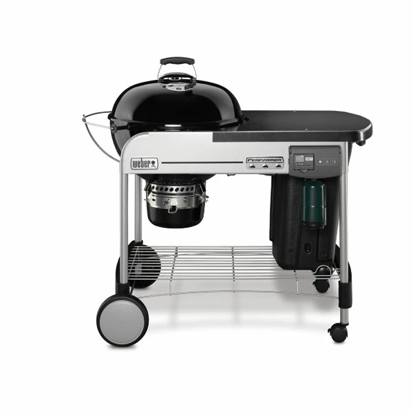 Der Performer Deluxe GBS Holzkohlegrill in Schwarz von Weber stellt Dir alles bereit, was Du als anspruchsvoller Holzkohlegriller benötigst. Die 57er-Kugel ruht in einem stabilen Grillwagen und sorgt so für zusätzliche Arbeitsfläche. Aber nicht nur der Rollwagen gewährleistet mehr Platz und Mobilität, auch der Seitentisch, der abnehmbarer Timer sowie das GBS Grillrost bieten Dir zusätzliche Flexibilität und einen authentischeren Grillgenuss. Aufgrund des elektrischen Gaszündsystems Touch-N-Go und dem im Deckel integrierten Thermometer bist Du in der Lage, die Holzkohle durch Knopfdruck anzuzünden und die Temperatur stets im Blick zu haben. Hinzu kommt, dass der Performer Deluxe GBS dank des One-Touch-Reinigungssystems im Handumdrehen wieder sauber und einsatzbereit ist.