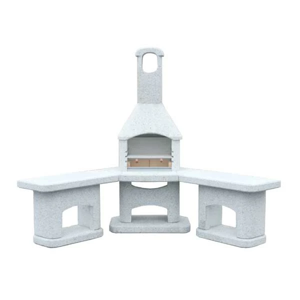Außenküche als Eckversion mit schräger Simpsplatte.